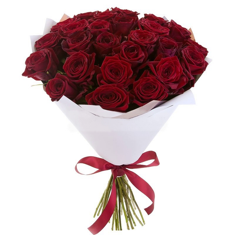 Букет из 25 бордовых роз в белом крафте